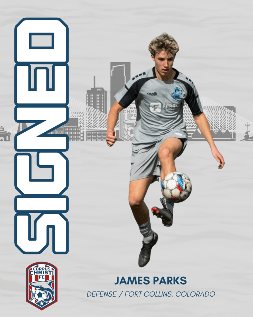 CORPUS CHRISTI, Texas (March 23, 2026) – Corpus Christi FC has signed defender James Parks to an academy contract for the Sharks’ first professional season in 2026, pending league and federation approval.